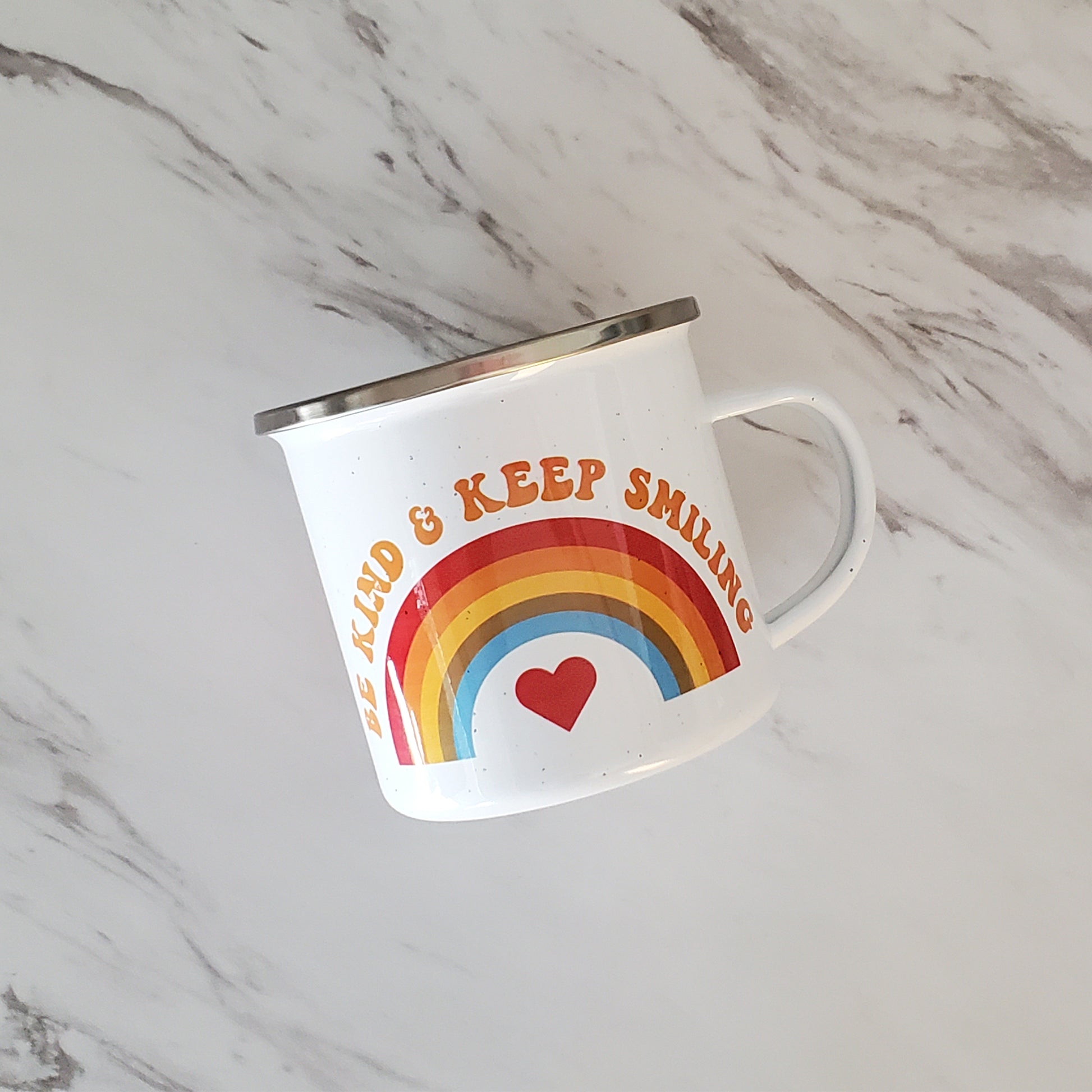 Be Kind & Keep Smiling Rainbow Camping Mug